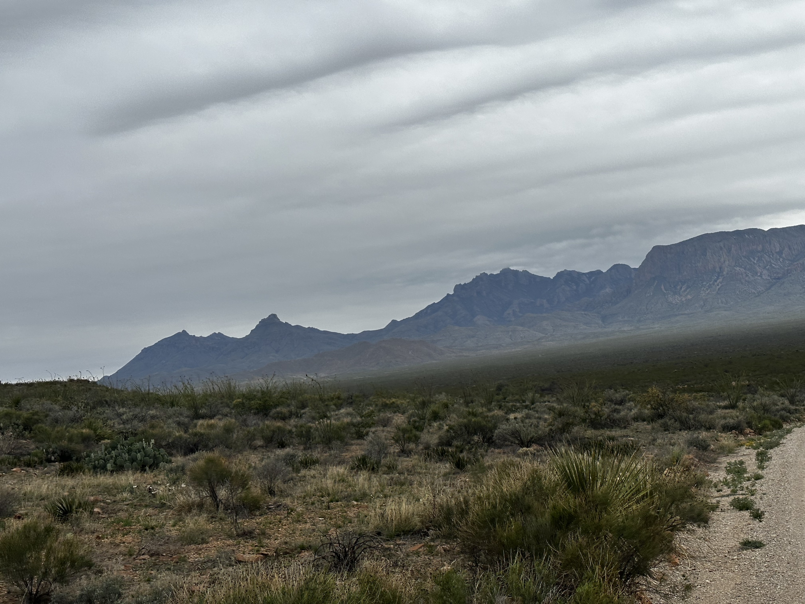 Worse. When we arrived in Marfa, Texas yesterday, the weather was nice: it was sunny, and the temperatures reached 72 degrees. Overnight, a cold front moved in and it was 38 degrees for our start and never got above 50 degrees for the whole ride. Our hands and feet were cold and our legs never felt like they got fully warmed even after hours of cycling.