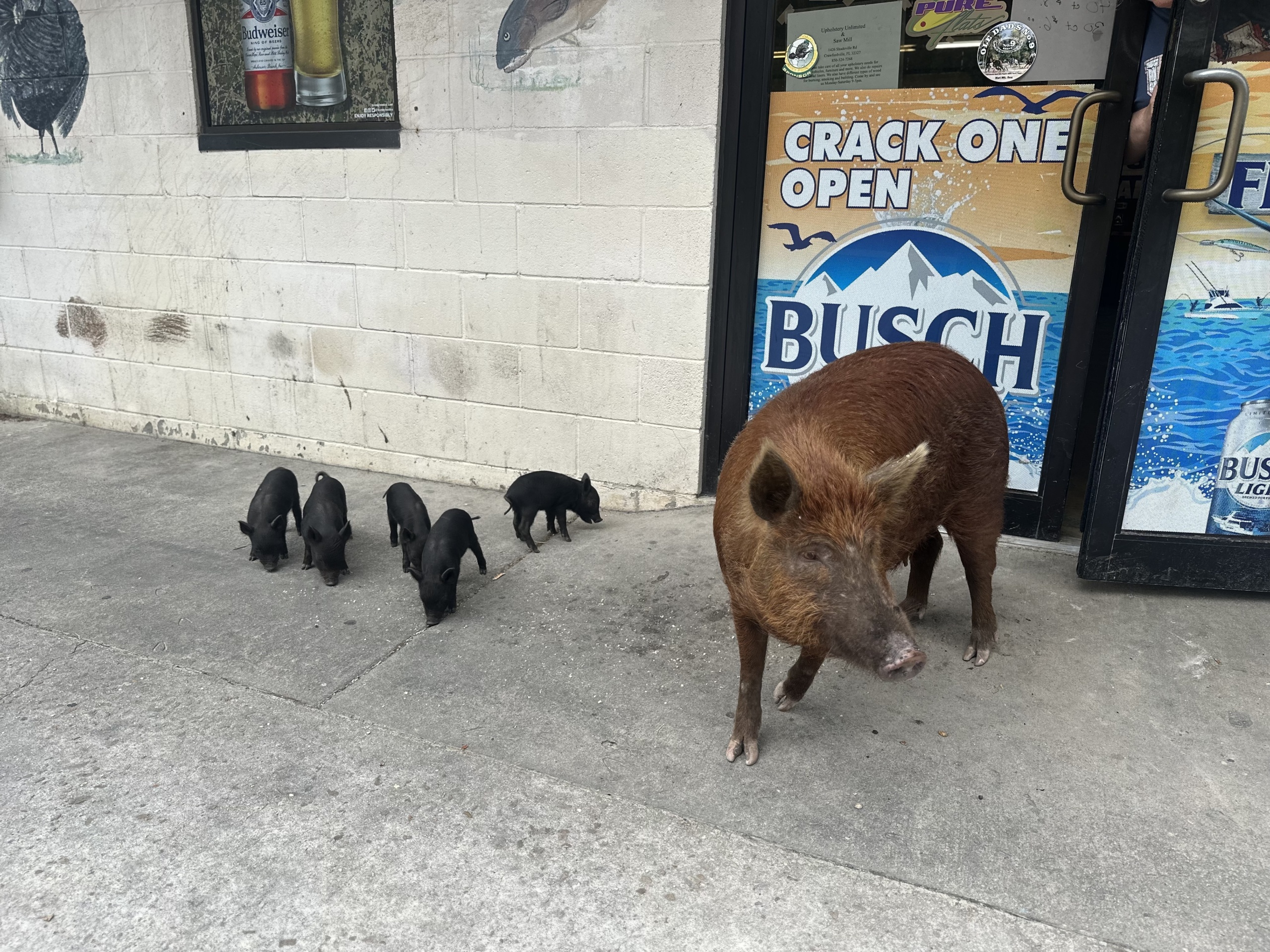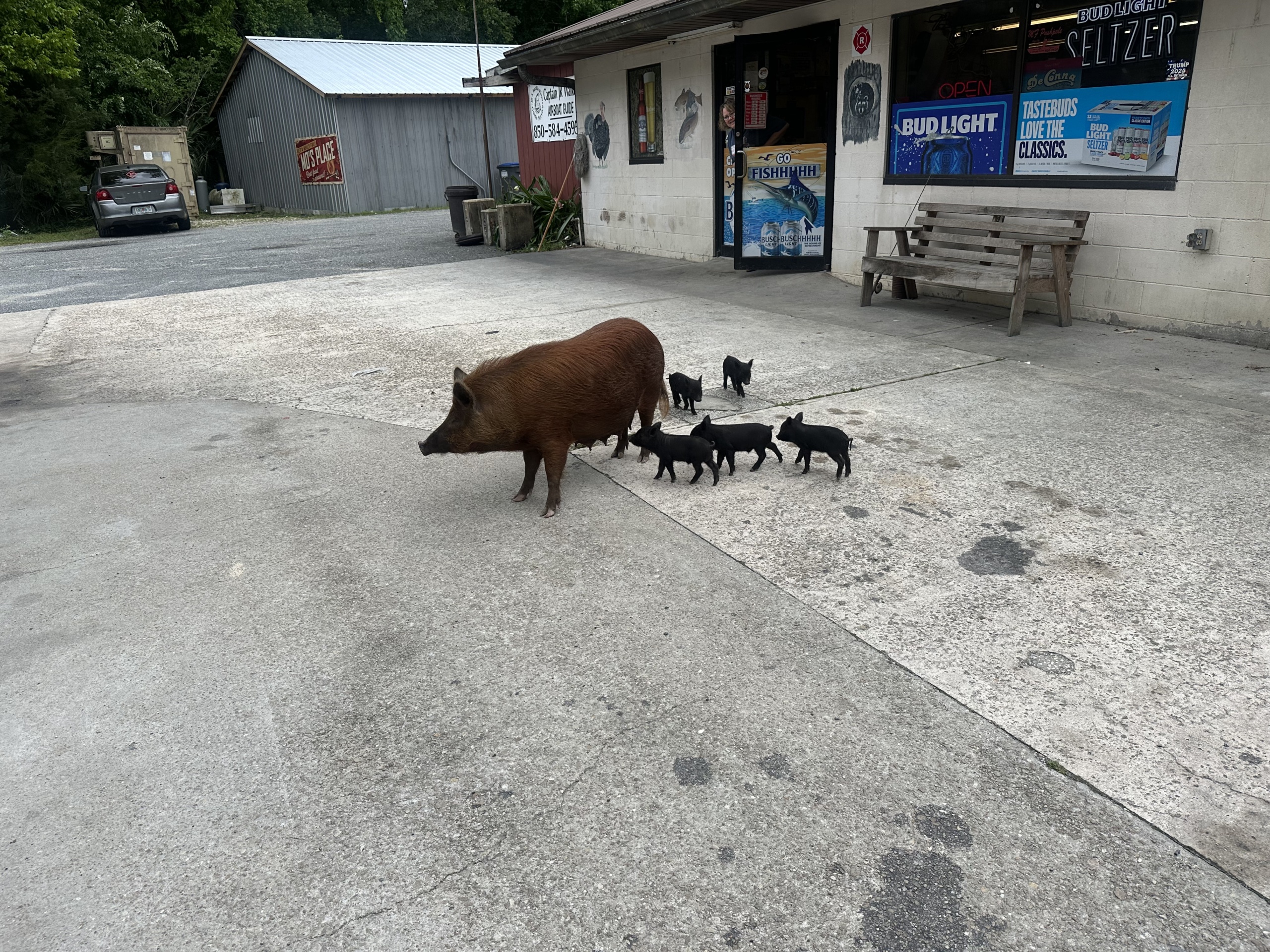 Our first stop came at about 30 miles in at a gas station, where the doors to enter were being blocked by a pig and her babies. The pig was nice and loves coming to the gas station because she gets all sorts of snacks from the lady working there.