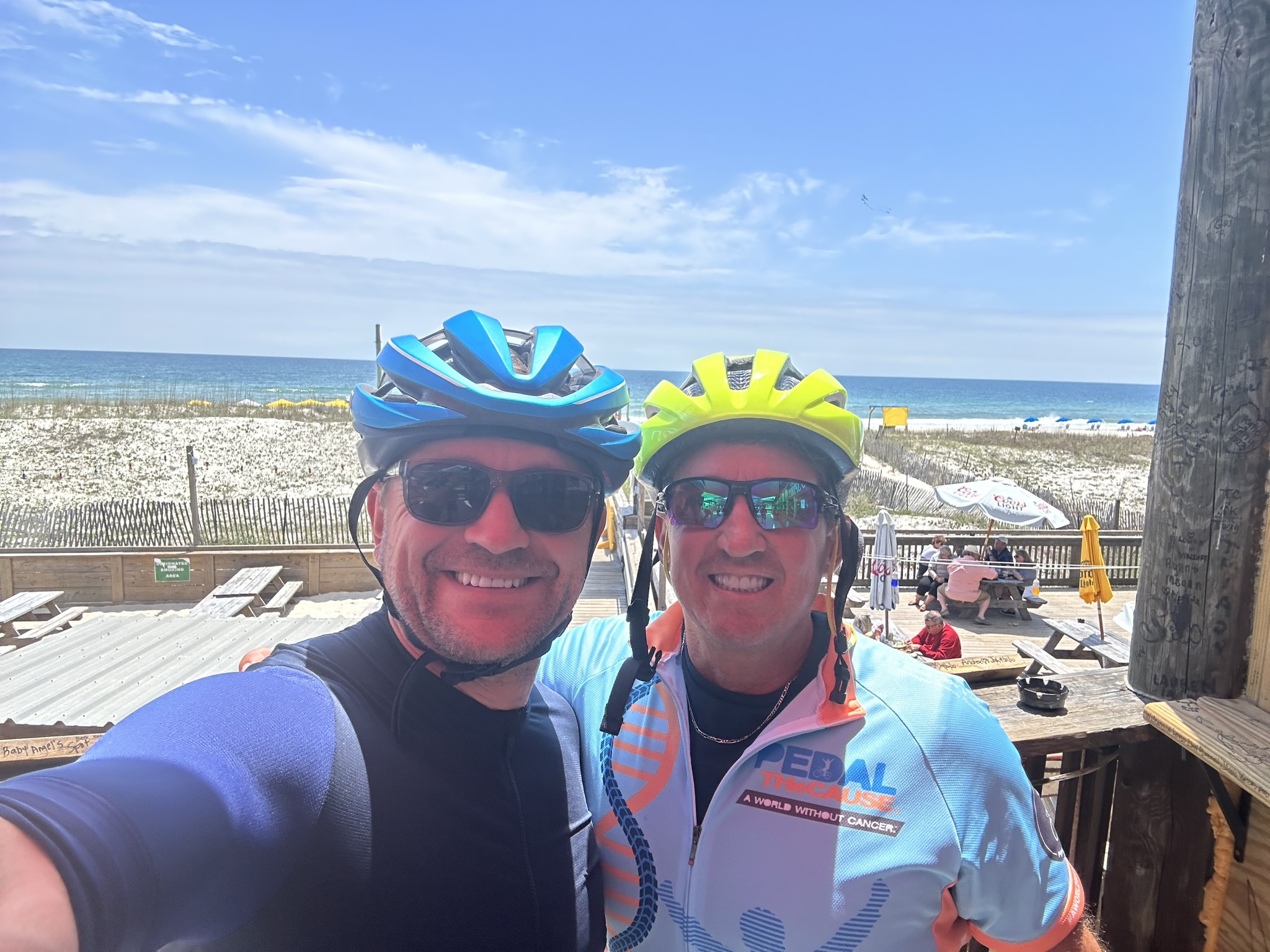 I also want to thank Kevin for helping with the SAG team and volunteering so much of his time, but more importantly, for always making sure we had fun. Some rides were tough because of weather, distance, climbs, a lack of motivation, or a combination of all of them, but Kevin always made sure that never ruined the rest of our day when we made it back to the RV—no matter how tired we were. I look back, and I remember all the fun and laughs we had because of Kevin—including beating him and Tom at pickleball after a 100-mile ride. Thank you, Kevin.