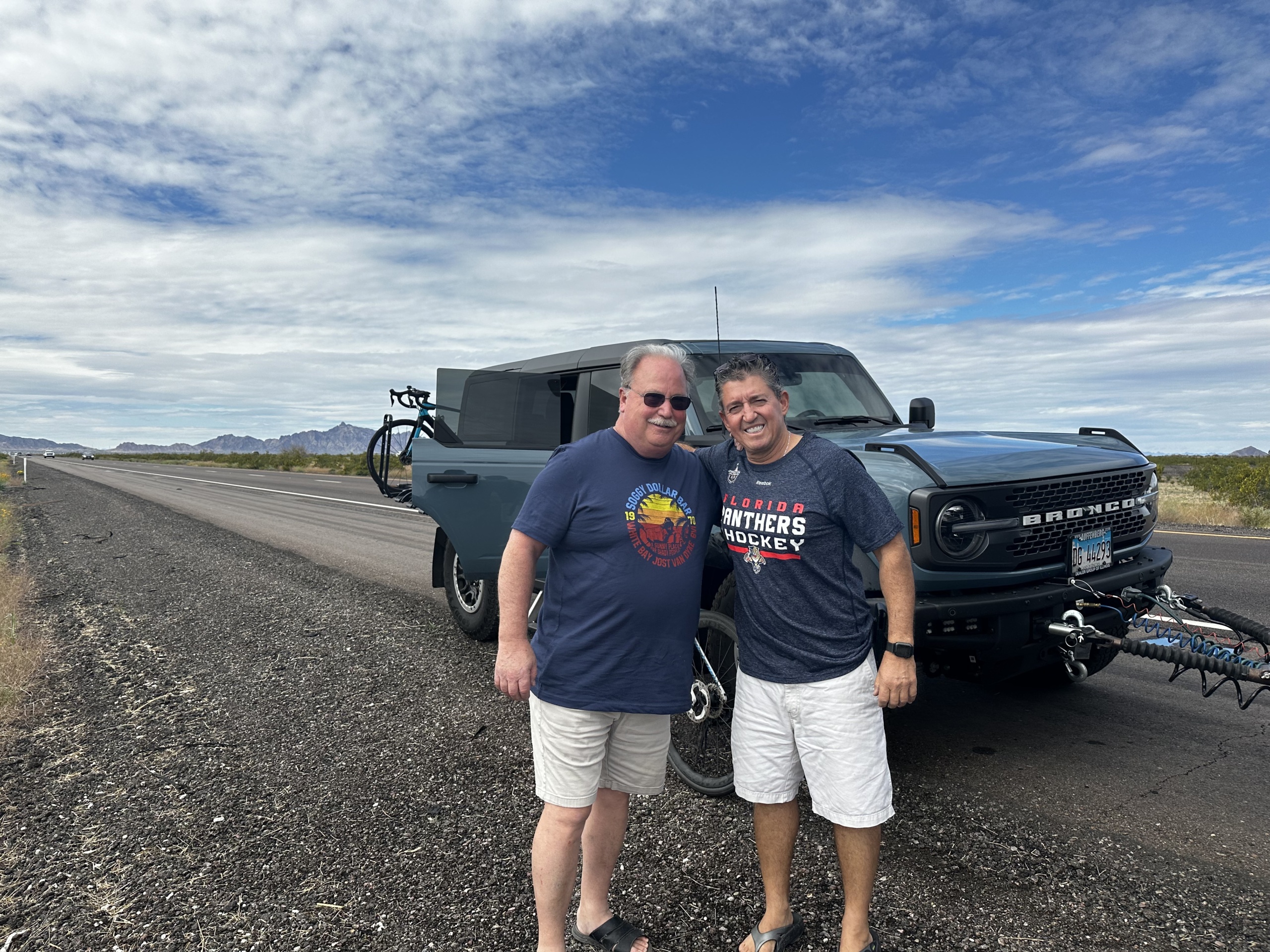 Donna & Rebecca: Thank you for getting Dave’s Bronco out to Arizona so we could use it as our support vehicle. Dave and I counted on that Bronco to save us many times from flat tires or forgotten items. It also gave us flexibility in our routing that allowed us to coin the term, “Bronco Pick Up.” That allowed us to ride farther or shorter depending on conditions and motivation, and to visit places we might’ve missed like Rutherford Beach, Louisiana (a spot that ranked highly on everyone’s list of favorite stops).