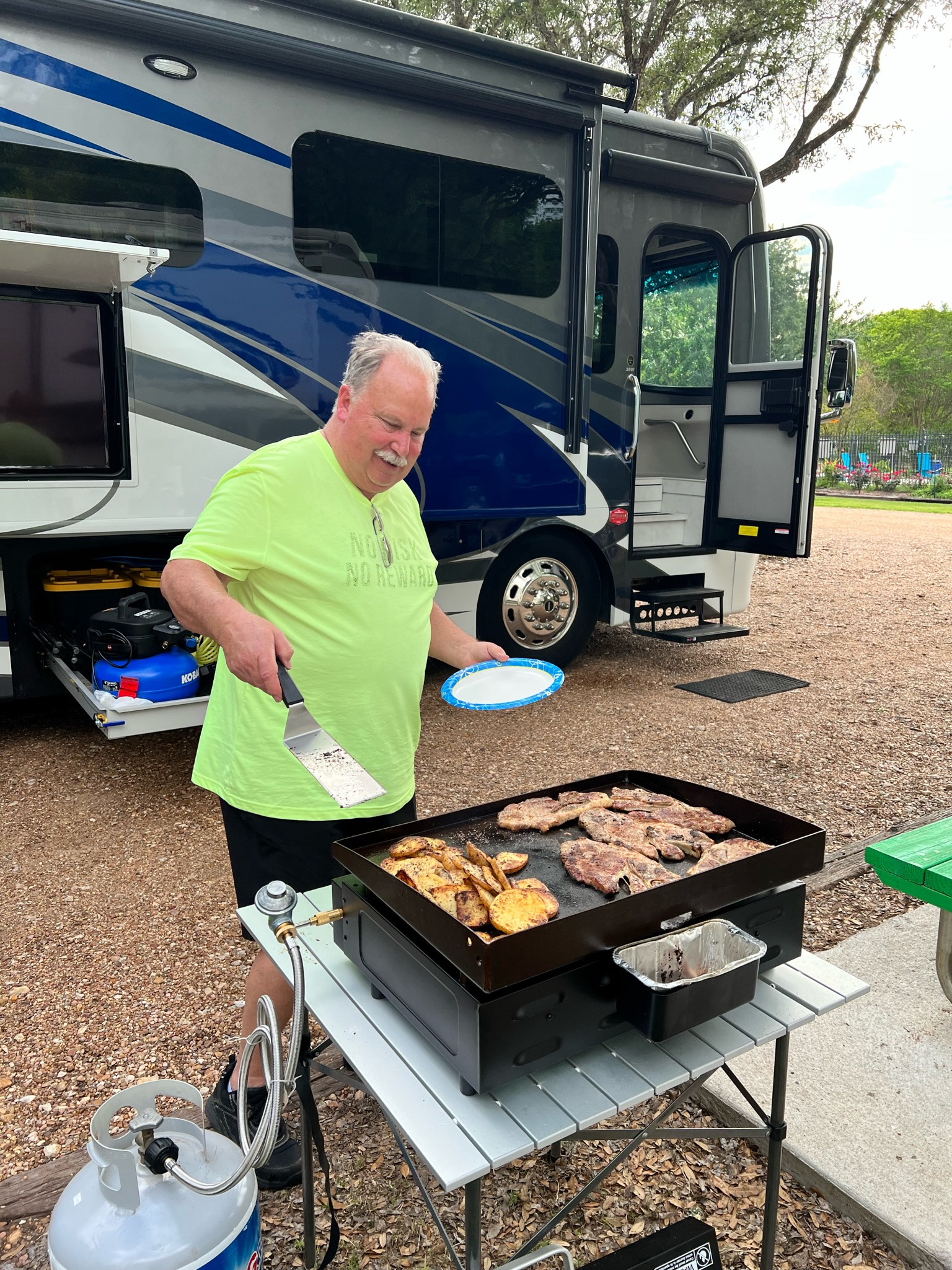Tom: You took great care of us and were our guiding father-figure on this trip. You volunteered 55 days away from home (something you haven’t done since the Navy) to make this happen. When Kevin had to be away, you had to take sole responsibility of the RV after only having one week of on-the-job training, and you did an amazing job with it. You kept us fueled with breakfast, after-ride charcuterie boards, and dinners. You kept us pointed east, our rubber on the pavement, and always riding forward so we accomplished our mission. Thank you, Tom.
